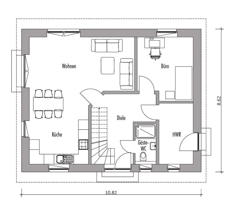 Satteldachhaus mit offener Küche und einladendem Wohnbereich